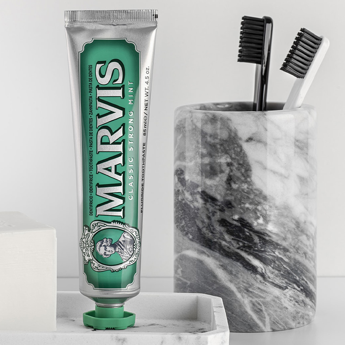 یکی ازمحبوب ترین موثر ترین محصولات در حوزه بهداشت دهان و دندان خمیر دندان های لوکس و خاص مارویس میباشد. برند Marvis محصول کشور ایتالیا میباشد که با طراحی خاص، طعمهای نوآورانه و بستهبندی لوکس، در سالهای اخیر مورد توجه خیلی از افراد قرار گرفته است . این برند با تمرکز روی کیفیت، زیبایی و تجربه لذتبخش مسواک زدن، خمیردندانهایی را تولید میکند که نهتنها از نظر تمیزی دندان بینظیرند، بلکه با رایحه و طعمهای منحصربهفرد، حس لوکس بودن را به شما القا میکنند. تنوع بی نظیر و جوابدهی سریع آن باعث شده که در میان خمیر دندان ها رتبه یک را به خود اختصاص دهد. اگر جزو افرادی هستین که از خوراکی های رنگی بویژه قهوه و نوشابه و کافئین و … استفاده میکنید و دندان های کدر و زرد دارید و یا میخواهید همیشه دندان های سفید و صدفی داشته باشید، بی شک بهترین انتخاب برای شما استفاده از خمیر دندان های مارویس میباشد .