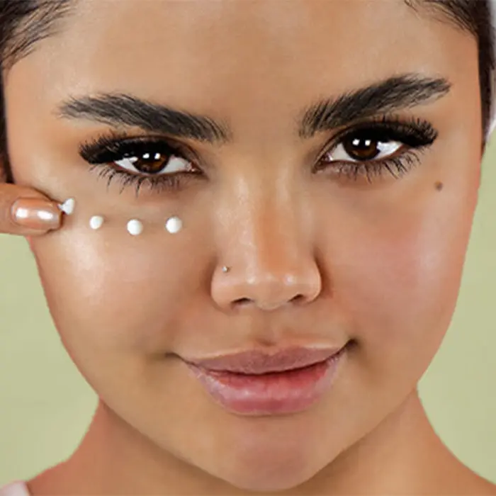مقدار کمی از کرم را با نوک انگشت روی پوست تمیز اطراف چشم قرار دهید. با ضربات بسیار ملایم از داخل به سمت خارج پخش کنید تا جذب به آرامی انجام شود. این کار را بهصورت منظم در روتین مراقبتی روز یا شب تکرار کنید.