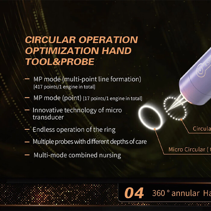 - 4 عدد کارتریج برای صورت در هندپیس تخت صورت و 3 عدد کارتریج برای بدن در هندپیس تخت بدن تعبیه شده اند.دارای 3 عدد کارتریج های اولترا بوستر 360 درجه حلقوی نیز است.