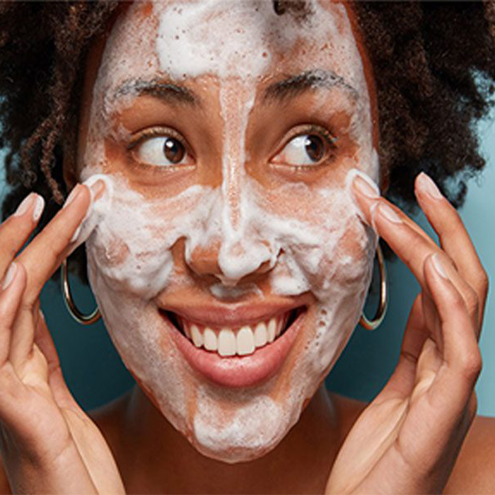 - کف ایجاد شده را با حرکات دورانی روی صورت بمالید تا آلودگی و چربی اضافی پاک شود.