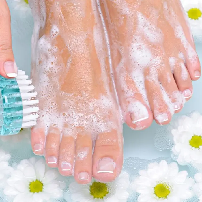 در زمان شستشو مقدار کافی از شوینده را روی کف پا و نواحی بین انگشتان قرار دهید و با دست چند ثانیه ماساژ دهید تا به تمام سطح پخش شود سپس با آب بشویید. پس از شستشو، پا را کاملاً خشک کنید تا رطوبت باقی نماند و بهتر است چند لحظه پا در معرض هوا قرار گیرد.